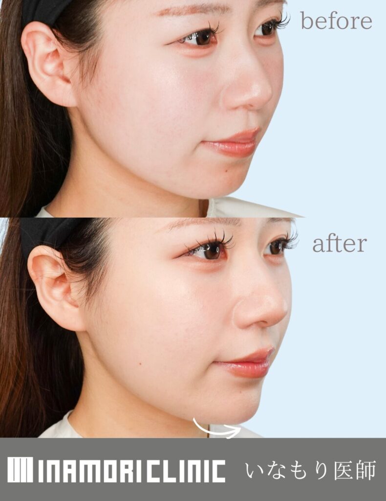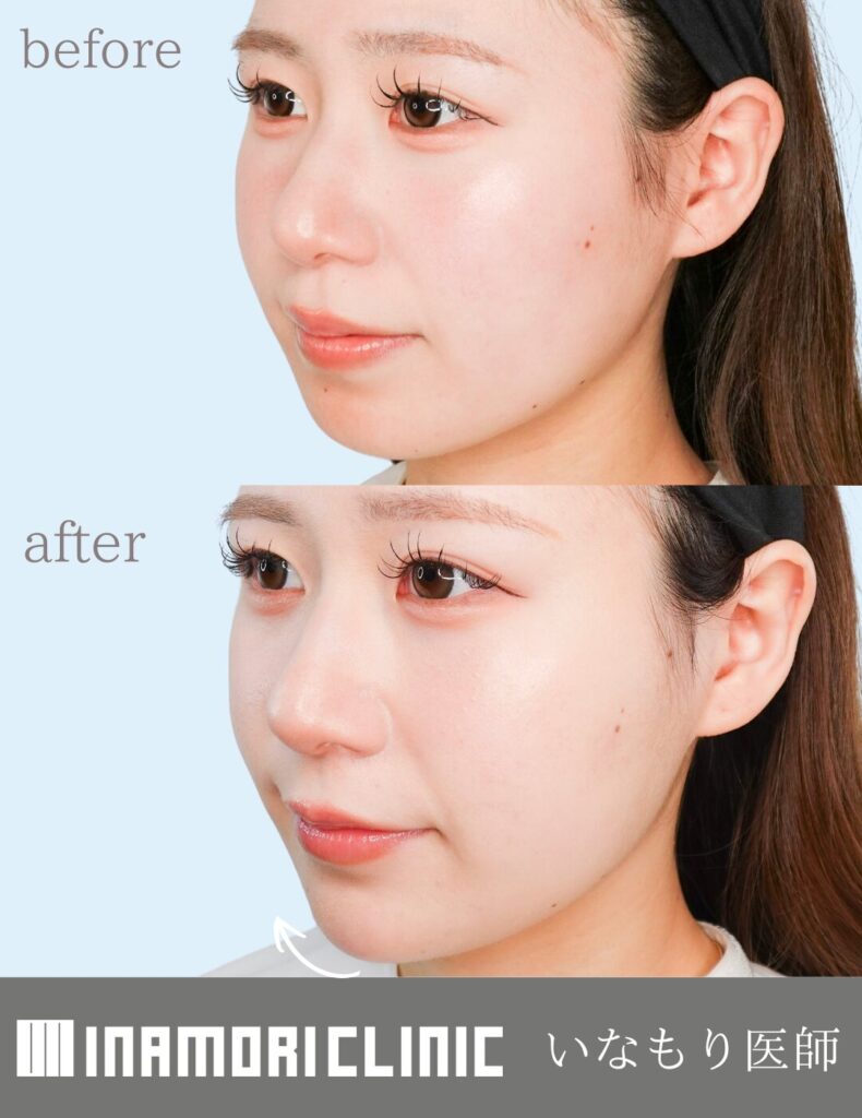 顎のヒアルロン酸で下顔面の輪郭を整え、オトガイ筋(顎ボトックス)で梅干しジワや前突感をやわらげ、エラ(咬筋)ボトックスで下顔面の横幅をすっきり見せる複合施術です。切らずに行え、周囲に気づかれにくい変化が期待できます。効果や必要量・回数には個人差があり、既存の骨格・筋量・咬み癖により最適設計が異なります。
