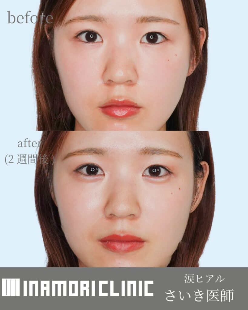 当院は“盛りすぎない”少量設計で不自然さを抑える方針です。経過で気になる点があれば再診で微調整し、必要に応じて溶解(ヒアルロニダーゼ)を検討します。むくみは1〜2週間で落ち着く場合があります。
