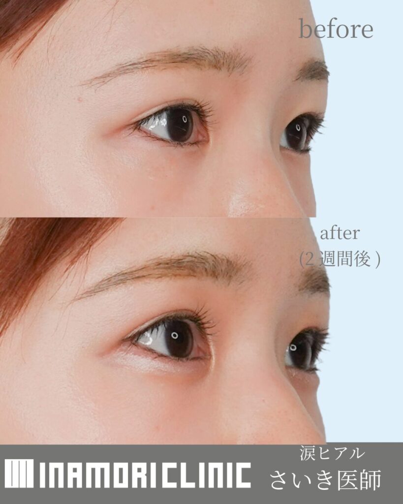 軽い腫れ・赤みは数日、内出血は1〜2週間ほどで落ち着く場合があります。多くはメイクでカバー可能です。大切なイベントがある場合は1〜2週間の余裕をみてご計画ください。