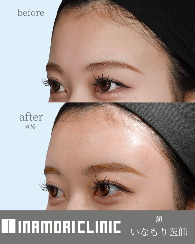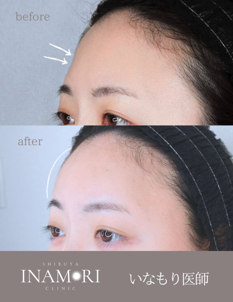 額は光の面を作る部位で、数ミリの高低差で印象が大きく変わる部位です。中央だけを盛ると不自然な半球になりやすく、側方のつながりが重要。渋谷いなもりクリニックでは、骨格・皮膚の厚み・眉上やこめかみとの連続性を見極め、点→線→面と少量を積み上げて滑らかな曲率を作ります。麻酔を適切に用いて痛みを最小化し、盛りすぎない自然な丸みを目指すのが当院のポリシー。自然に“盛れている感”を目指しましょう。初めての方にも分かりやすくご説明し、安心して受けていただける体験を大切にしています。