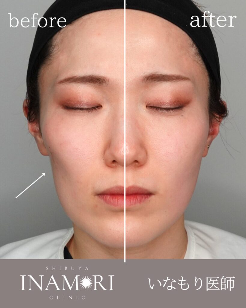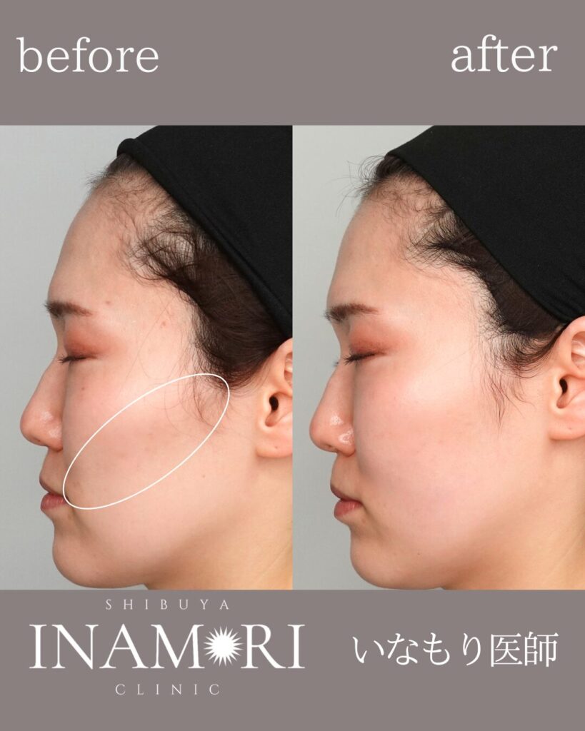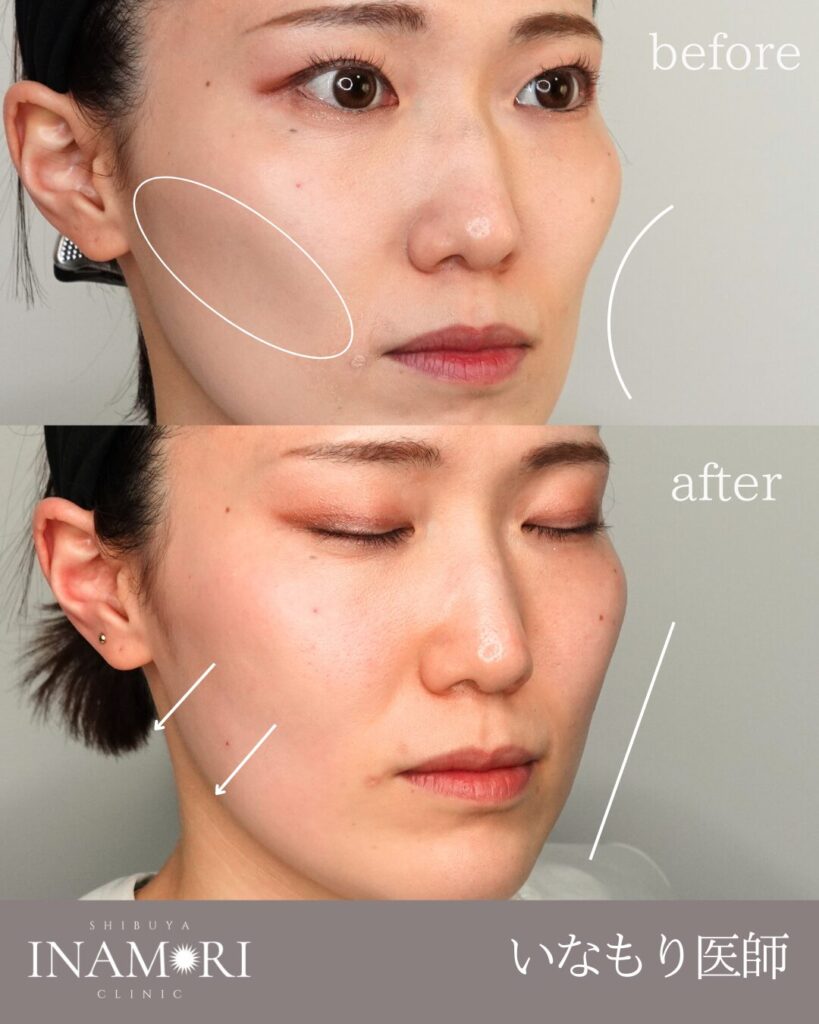 頬は“盛れば良い”部位ではありません。横顔・斜位の光と影笑顔時の動きまで見て、最小限の量で最大限に自然な印象を引き出すことを重視します。痛みは丁寧な麻酔で和らげ、内出血や腫れに配慮して少量分割で調整。ふっくらしつつ、やり過ぎない上品な仕上がりを目指します。