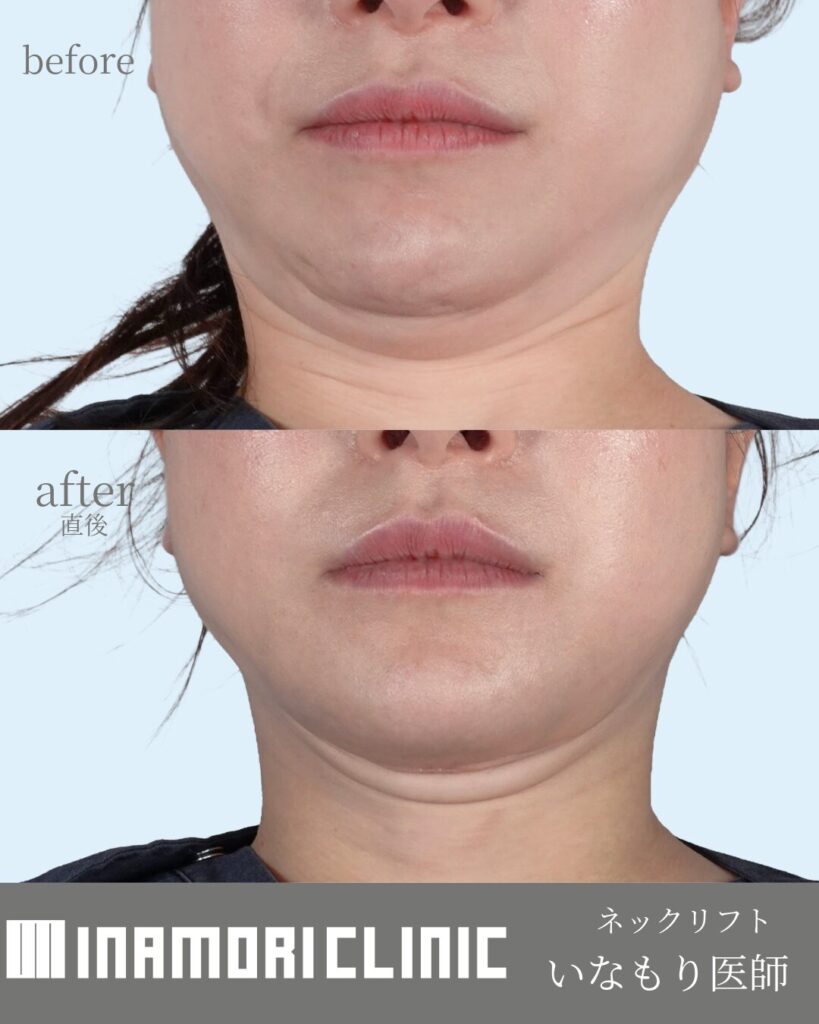 ネックリフトは、首元をただ強く引っ張ればよい施術ではありません。あご下のもたつき、皮膚の厚み、フェイスラインとのつながりを見ながら、無理のない範囲で自然に整えることが大切です。当院では痛みに配慮した麻酔設計を行い、はじめての方にも安心して受けていただけるよう、適応や限界も含めて丁寧にご説明しています。